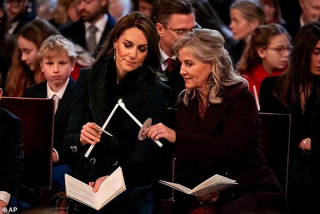 其中一张显示凯特在教堂内协助七岁幼子路易斯稳稳托住点燃的蜡烛,另一手紧握节目单,母子低声交谈,路易斯脸上挂着调皮笑容。